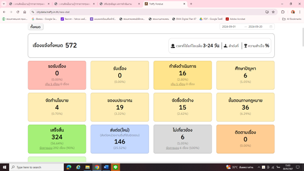 ![]() | 4 | ดำเนินการแก้ไขปัญหาและรายงานผลการดำเนินการผานแพลตฟอร์ม Traffy Fondue | 70.00 | 2023-10-01 00:00:00.0000000 | 2024-09-30 00:00:00.0000000 |