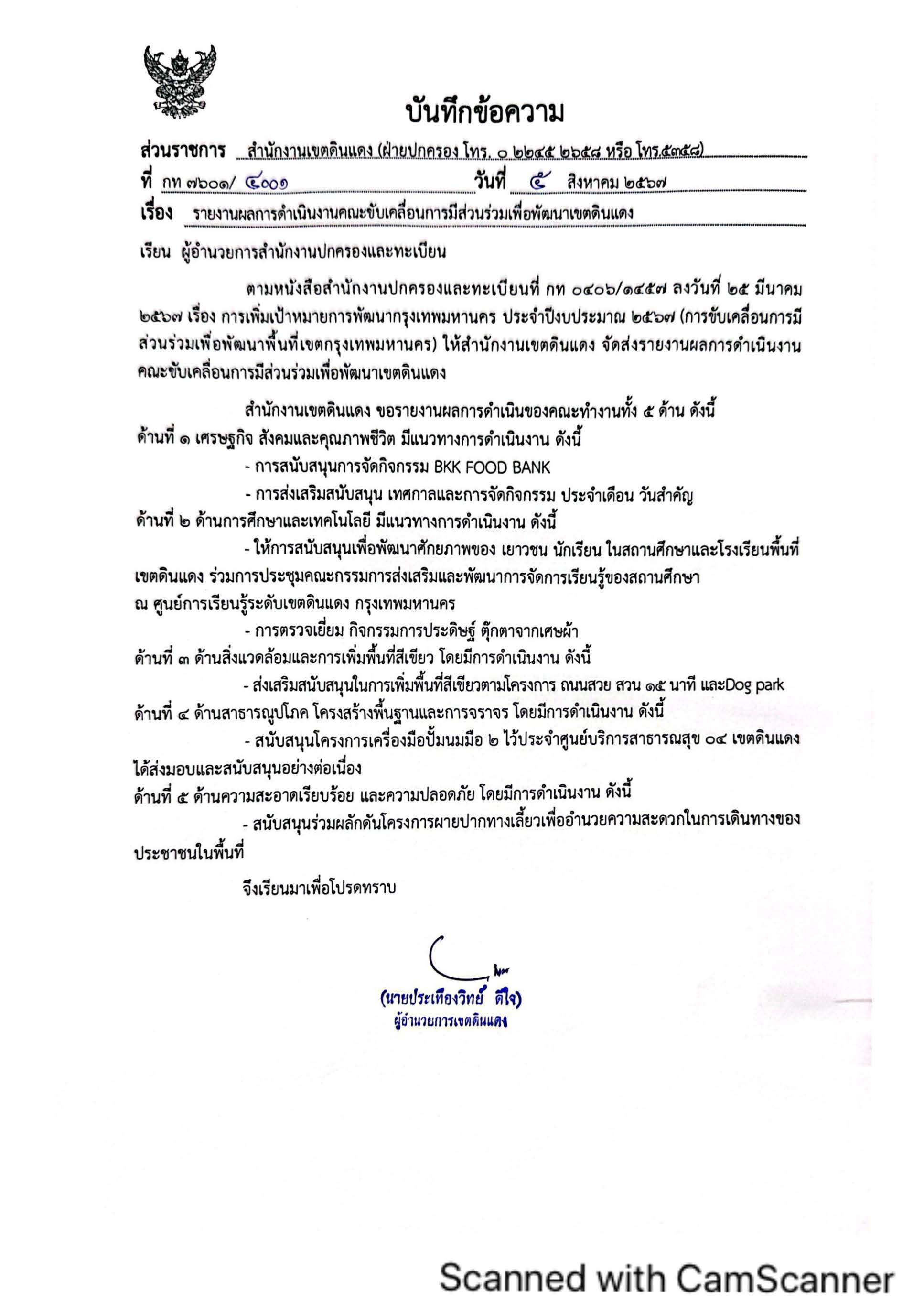 ![]() | - | จัดตั้งคณะขับเคลื่อนการมีส่วนร่วมเพื่อการพัฒนาเขต | 0.00 | 100.00 | สำนักงานเขตดินแดง | ฝ่ายปกครอง |