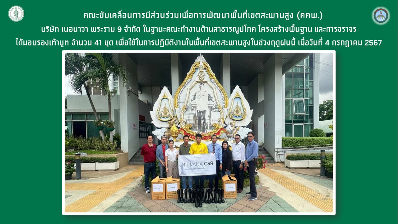 | 1596 | ![]() | 2024-07-31 00:00:00.0000000 | 0.00 | 0.00 | บริษัท เนอนาวา พระราม 9 จำกัด ในฐานะคณะทำงานด้านสาธารณูปโภค โครงสร้างพื้นฐาน และการจราจร ได้มอบรองเท้าบูท จำนวน 41 ชุด เพื่อใช้ในการปฏิบัติงานในพื้นที่เขตสะพานสูงในช่วงฤดูฝนนี้ เมื่อวันที่ 4 กรกฎาคม 2567 | ||