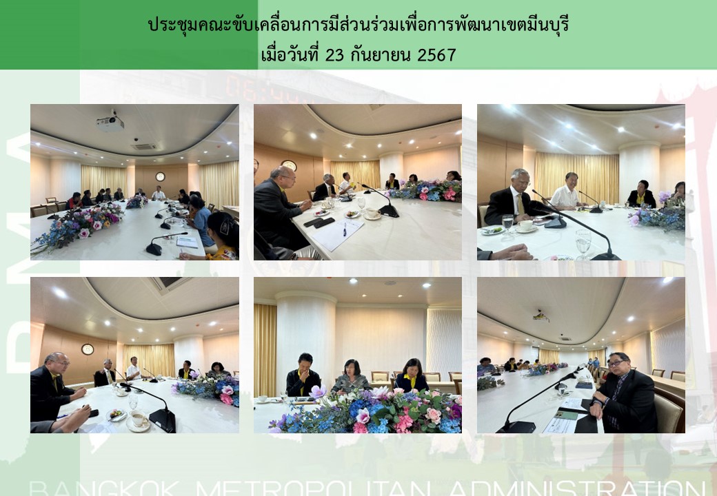 | 1596 |  | 2024-09-27 00:00:00.0000000 | 0.00 | 0.00 |  | วันที่ 23 กันยายน 2567 คณะขับเคลื่อนการมีส่วนร่วมเพื่อการพัฒนาเขตมีนบุรี ด้านเศรษฐกิจ สังคมและคุณภาพชีวิต ด้านสิ่งแวดล้อมและเพิ่มพื้นที่สีเขียว ด้านการศึกษาและเทคโนโลยี ร่วมประชุมค้นหาอัตลักษณ์ และสืบค้นประวัติอันทรงคุณค่าที่มีมาอย่างยาวนานของเมืองมีนบุรี เพื่อรวบรวมและเผยแพร่ให้อนุชนรุ่นหลังได้ศึกษาหาความรู้ และภูมิใจในอัตลักษณ์ของเมืองมีนบุรีต่อไป