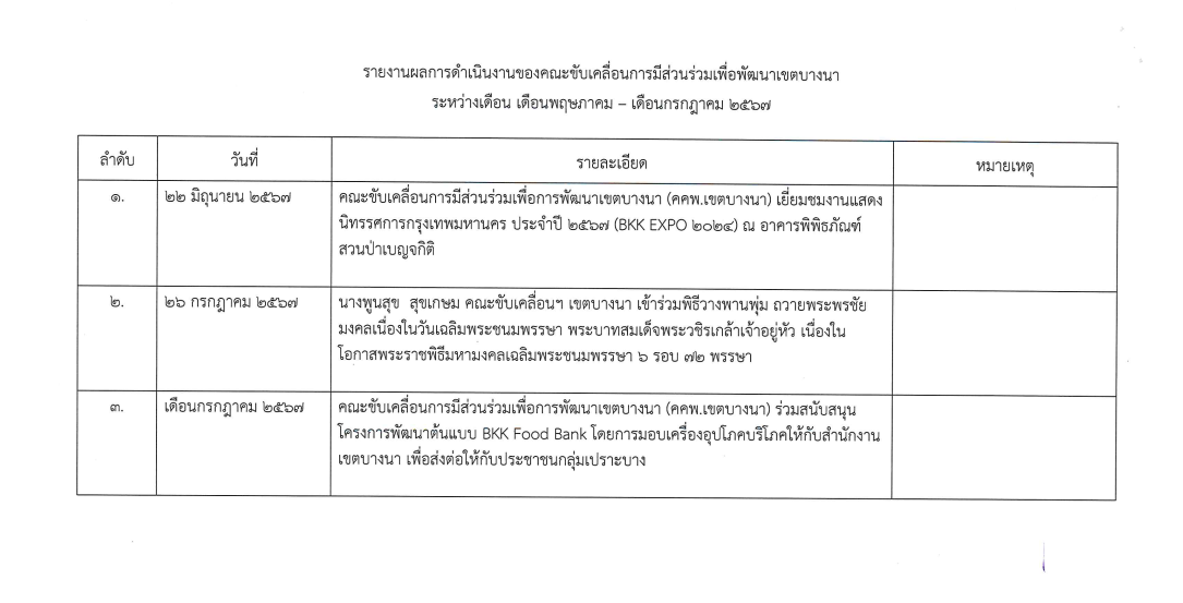 รายละเอียดโครงการ : การขับเคลื่อนการมีส่วนร่วมเพื่อการพัฒนาพื้นที่เขตกรุงเทพมหานคร ของสำนักงานเขตบางนา (ID: 8187)
