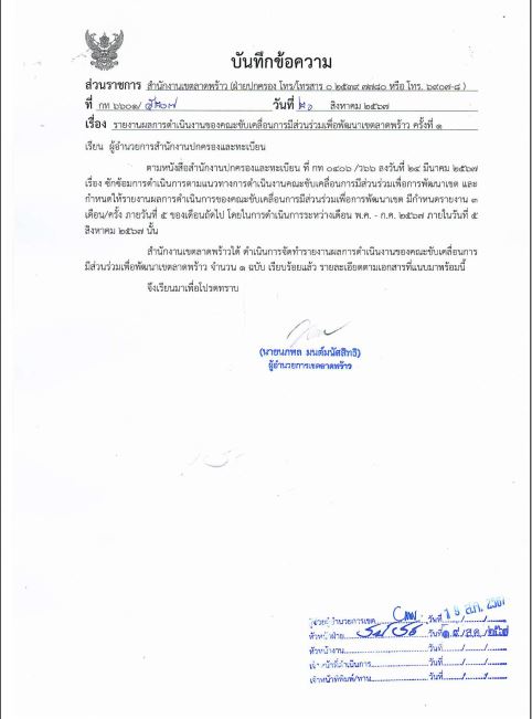 | 1596 |  | 2024-08-26 00:00:00.0000000 | 1.00 | 0.00 |  | สำนักงานเขตลาดพร้าว รายงานผลการดำเนินงานของคณะขับเคลื่อนการมีส่วนร่วมเพื่อพัฒนาเขตลาดพร้าว จำนวน 1 ฉบับ | |