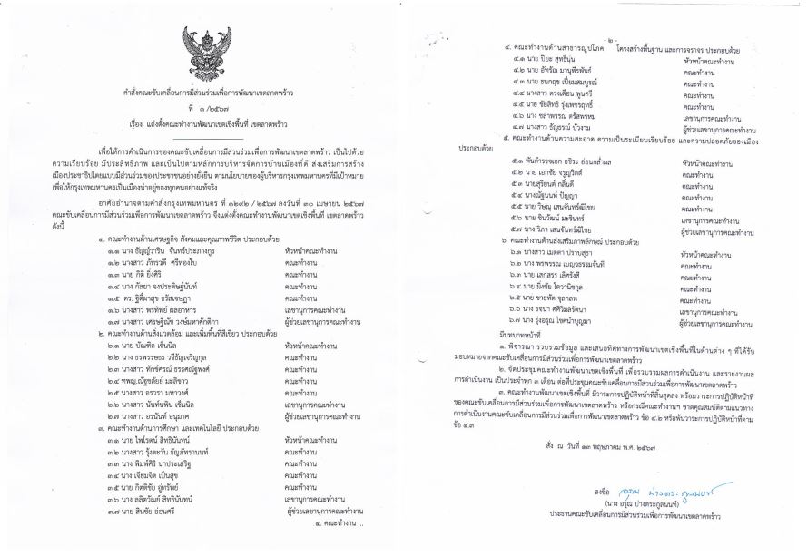 | 1596 |  | 2024-06-13 00:00:00.0000000 | 1.00 | 0.00 |  | สำนักงานเขตลาดพร้าวได้เสนอคำสั่งฯ แต่งตั้งคณะขับเคลื่อนการมีส่วนร่วมเพื่อการพัฒนาเขตลาดพร้าว โดยได้ส่งให้สำนักงานปกครองและทะเบียนเมื่อวันที่ 19 เมษายน 2567 และปลัดกรุงเทพมหานครลงนามคำสั่งกรุงเทพมหานคร ที่ 1292/2567 ลงวันที่ 30 เมษายน 2567 | |