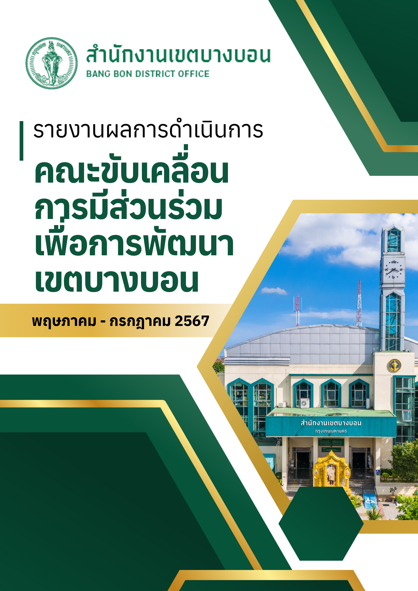 | 1596 | ![]() | 2024-08-23 00:00:00.0000000 | 1.00 | 0.00 | สำนักงานเขตบางบอนได้ดำเนินการจัดทำรายงานผลการดำเนินงานคณะขับเคลื่อนการมีส่วนร่วมเพื่อการพัฒนาเขตบางบอน ระหว่างเดือนพฤษภาคม - กรกฎาคม 2567 เพื่อสรุปผลการดำเนินการในด้านการประชุมคณะขับเคลื่อนฯ การประชุมคณะทำงานพัฒนาเขตเชิงพื้นที่ และรายงานกิจกรรมของคณะขับเคลื่อน | ||
