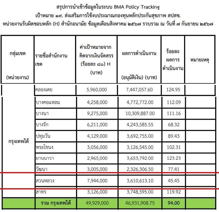 ![]() | - | ส่งเสริมการใช้งบประมาณกองทุนหลักประกันสุขภาพ สปสช (มูลค่าเงินที่เบิกจ่าย) | 0.00 | 100.00 | สำนักงานเขตสวนหลวง | ฝ่ายพัฒนาชุมชนและสวัสดิการสังคม |