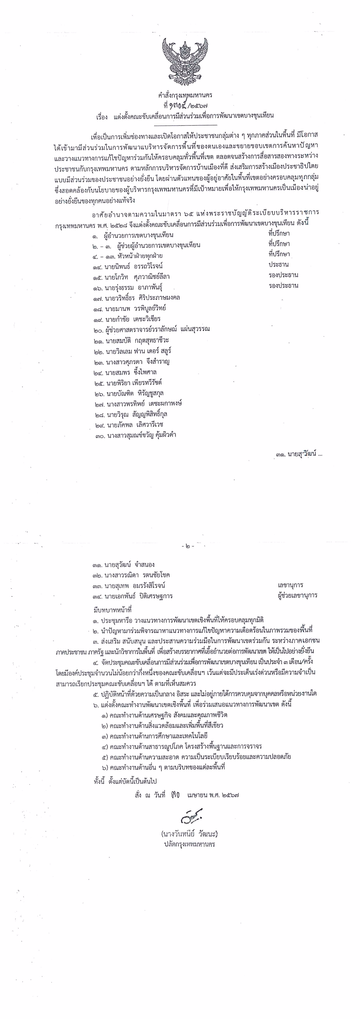 ![]() | - | จัดตั้งคณะขับเคลื่อนการมีส่วนร่วมเพื่อการพัฒนาเขต | 0.00 | 100.00 | สำนักงานเขตบางขุนเทียน | ฝ่ายปกครอง |