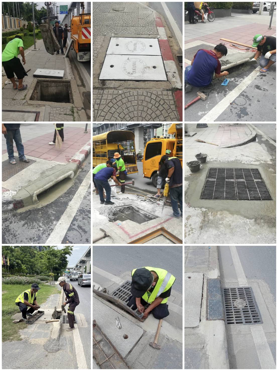 | 99 |  | 2024-07-17 00:00:00.0000000 | 0.00 | 0.00 |  | วันที่ 15 กรกฎาคม 2567 สำนักการระบายน้ำ โดยกองระบบท่อระบายน้ำ กลุ่มงานซ่อมระบบท่อระบายน้ำ(ซ่อม 1) ระบายน้ำ 531 5313 5316 จัดเจ้าหน้าที่หน่วยซ่อม พร้อมรถเบส รถเครื่องสกัด รถเฮี้ยบ และอุปกรณ์ ระบายน้ำ 2525 ดำเนินการแก้ไขจัดซ่อมขอบบ่อพักพร้อมปิด-เปลี่ยนฝาท่อระบายน้ำชำรุด จำนวน 1 บ่อ ปิด-เปลี่ยนฝาคสล.ขอบเหล็ก จำนวน 10 แผ่น ปิด-เปลี่ยนฝาตะแกรงเหล็ก จำนวน 2 แผ่น และซ่อมใส่คันหินตะแกรงช่องรับน้ำ จำนวน 4 ช่อง ถนนศรีนครินทร์ ตอนบริเวณคลองกะจะถึงคลองตาสาด พื้นที่เขตสวนหลวง | |