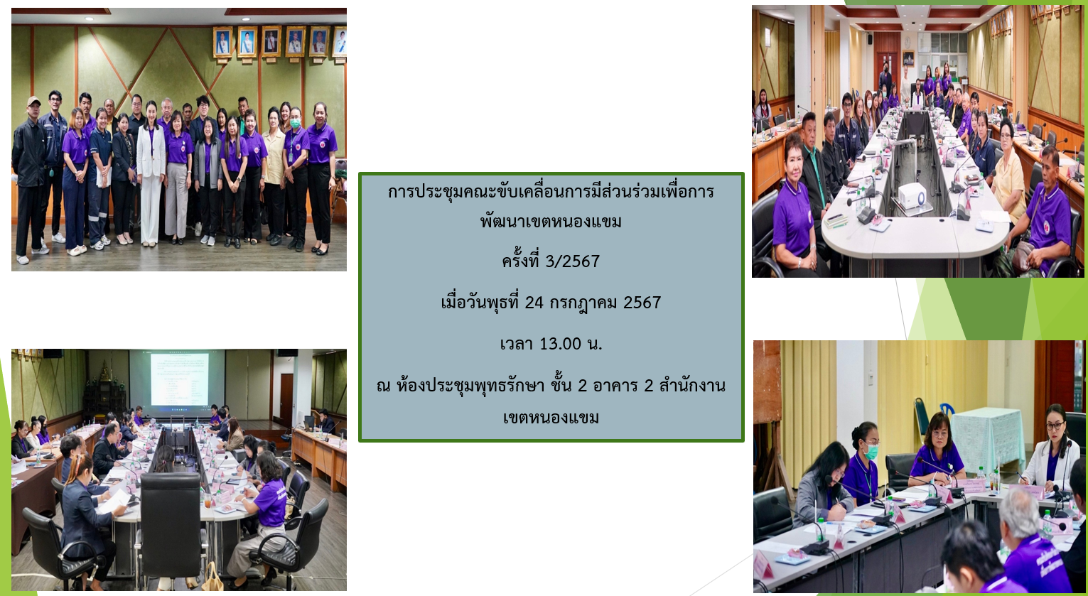 | 1596 | ![]() | 2024-07-24 00:00:00.0000000 | 0.00 | 0.00 | การประชุมคณะขับเคลื่อนการมีส่วนร่วมเพื่อการพัฒนาเขตหนองแขม ครั้งที่ 3 /2567 วันพุธที่ 24 กรกฎาคม 2567 เวลา 10.00 น. ณ ห้องประชุมพุทธรักษา ชั้น 2 อาคาร 2 สำนักงานเขตหนองแขม | ||