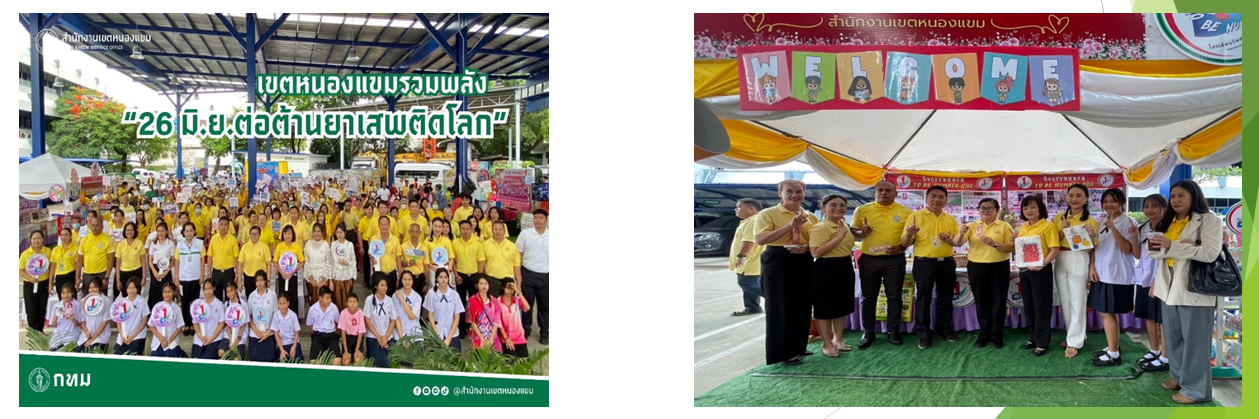 | 1596 | ![]() | 2024-07-24 00:00:00.0000000 | 0.00 | 0.00 | เมื่อวันที่ 26 มิถุนายน 2567 คณะขับเคลื่อนการมีส่วนร่วมเพื่อการพัฒนาเขตหนองแขม ร่วมกิจกรรมรณรงค์ต่อต้านยาเสพติด เนื่องในวันต่อต้านยาเสพติดโลก (วันที่ 26 มิถุนายนของทุกปี) ภายใต้คำขวัญ "รวมพลังไทย สร้างครอบครัว ชุมชนอุ่นใจ พ้นภัยยาเสพติด เฉลิมพระเกียรติ 72 พรรษามหาราชา" ซึ่งมีหน่วยงานต่างๆ เข้าร่วม ภายในงานมีกิจกรรมที่ให้ความรู้เกี่ยวกับโทษของยาเสพติด ให้ประชาชนทุกคน ได้ตระหนักถึงอันตรายของยาเสพติด และร่วมเป็นพลังในการต่อต้านยาเสพติด พร้อมสอดส่องดูแล สร้างพื้นที่ปลอดภัยในชุมชนไปด้วยกัน | ||