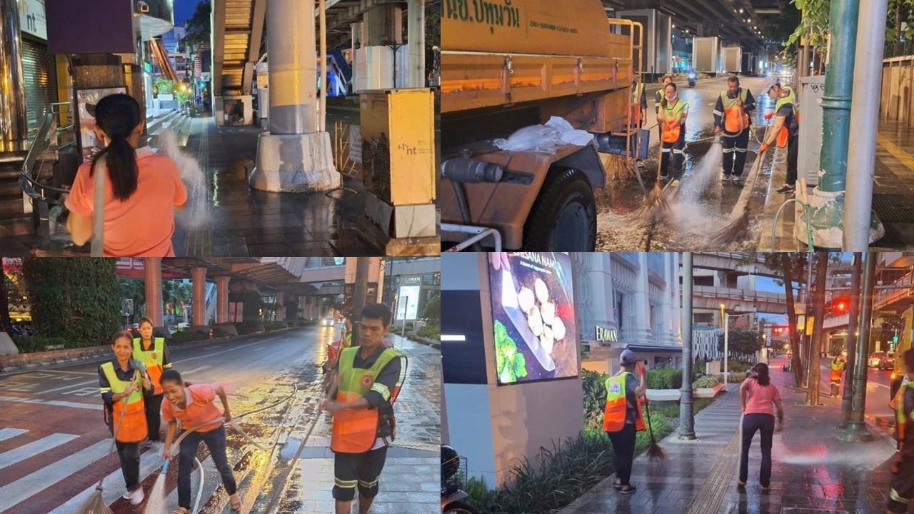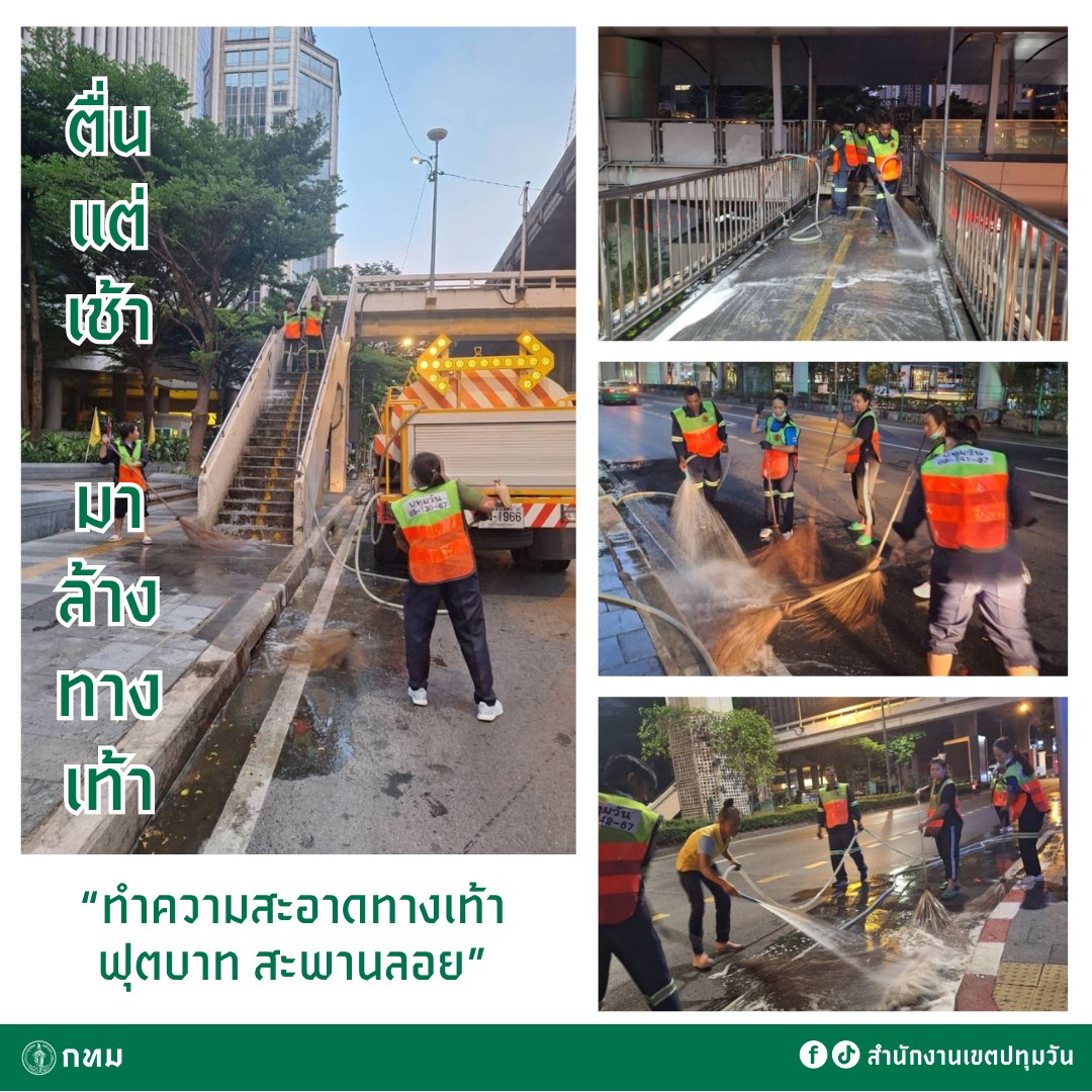สำนักงานเขตปทุมวันได้จัดเจ้าหน้าที่ฝ่ายรักษาความสะอาดฯ พร้อมรถบรรทุกน้ำ
