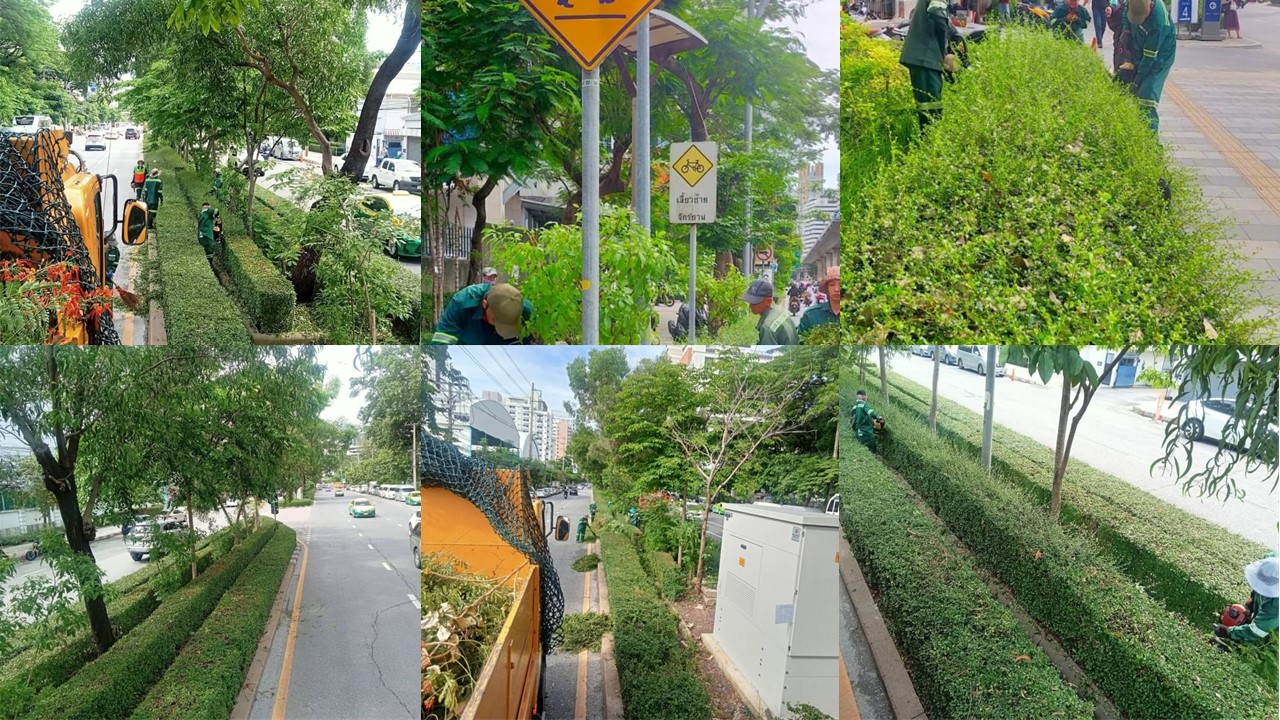 (15 มิ.ย. 67) นายชาตรี วัฒนเขจร รองปลัดกรุงเทพมหานครจัดกิจกรรม Big Cleaning เฉลิมพระเกียรติ พระบาทสมเด็จพระเจ้าอยู่หัวเนื่องในโอกาสพระราชพิธี มหามงคลเฉลิมพระชนมพรรษา 6 รอบ 28 กรกฎาคม 2567 กิจกรรมล้างทำความสะอาดถนนสายหลัก และปรับปรุงภูมิทัศน์ เขตปทุมวัน โดยนางสาวสุขวิชญาณ์ นสมทรง ผู้อำนวยการเขตปทุมวัน มอบหมายให้คณะผู้บริหารเขต เจ้าหน้าที่ฝ่ายรักษาความสะอาดฯ และเจ้าหน้าที่ฝ่ายโยธา ร่วมล้างทำความสะอาดทางเท้าและผิวจราจร ตัดแต่งกิ่งไม้ใหญ่และไม้พุ่ม ล้างทำความสะอาด Street furniture และลบข้อความไม่เหมาะสม เพื่อปรับปรุงภูมิทัศน์ถนนพระรามที่ 4 บริเวณแยกสะพานเหลืองถึงแยกสามย่าน | |