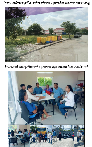 | 1557 | ![]() | 2024-07-10 00:00:00.0000000 | 2.00 | 0.00 | สำรวจและกำหนดจุดพักขยะหรือจุดทิ้งขยะ จำนวน 2 หมู่บ้าน คือ หมู่บ้านเอื้ออาทรเคหะประชาสำราญ และหมู่บ้านพฤกษาวิลล์ ถนนเลียบวารี |