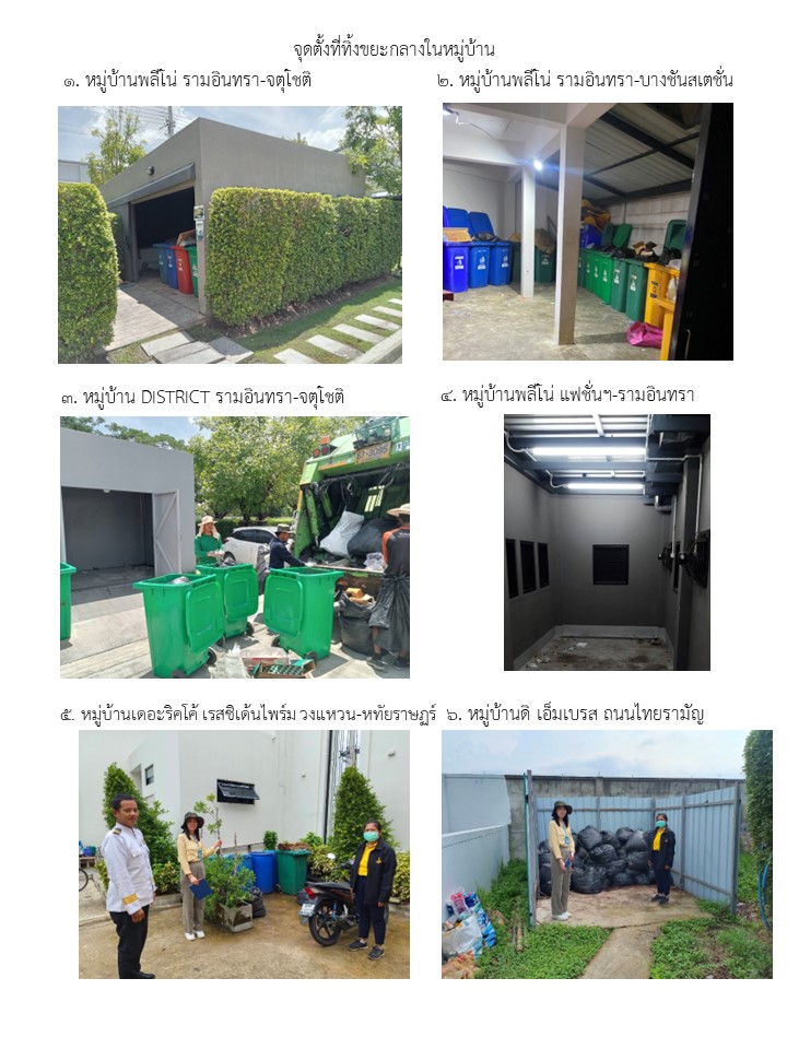 | 1557 | ![]() | 2024-09-09 00:00:00.0000000 | 6.00 | 0.00 | ดำเนินการสำรวจจุดทิ้งขยะกลาง จำนวน 6 หมู่บ้าน มีจุดทิ้งขยะกลาง จำนวน 1 หมู่บ้าน ได้แก่ หมู่บ้าน Habitia Yard และไม่มีจุดทิ้งขยะกลาง จำนวน 5 หมู่บ้าน จึงขอความร่วมมือกำหนดจุดทิ้งขยะกลางในหมู่บ้าน ดังนี้ 1. หมู่บ้านวินสัน, 2. หมู่บ้านฮาบิเทีย เวนต์ ปัญญาอินทรา, 3. หมู่บ้านฮาบิเทีย ปัญญาอินทรา 1, 4. หมู่บ้านเดอะซิตี้ รามอินทรา-วงแหวน 2, 5.หมู่บ้านเดอะพราว ถนนนิมิตใหม่ | ||