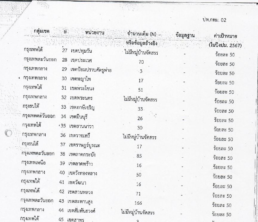 15572024-09-25 00:00:00.00000000.000.00สรุปผลการดำเนินการตั้งจุดทิ้งขยะกลางในหมู่บ้านของเขตมีนบุรีจำนวนเต็ม 26 แห่ง ค่าเป้าหมายของปี 2567 เขตมีนบุรี ร้อยละ 50 ดำเนินการแล้ว 13 แห่ง ตามเป้าหมายที่กำหนด