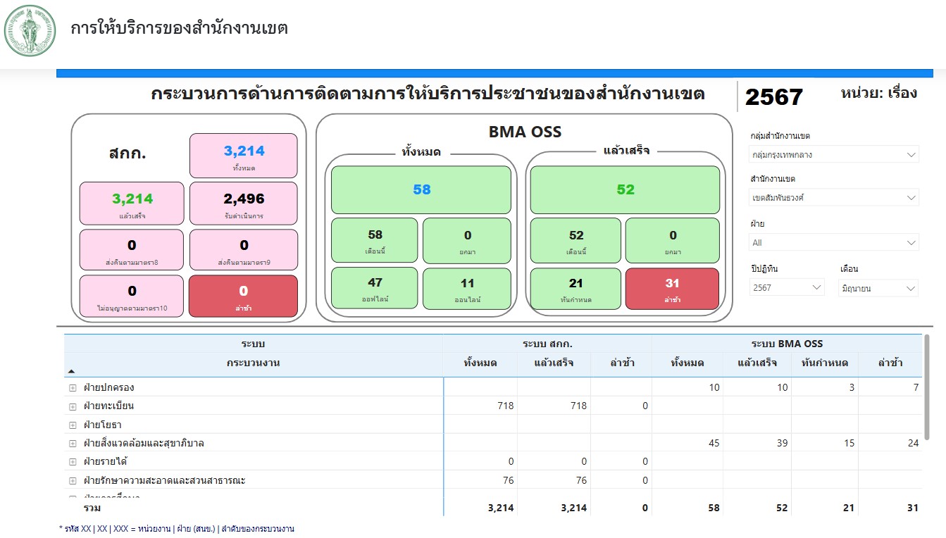 ![]() | - | พัฒนามาตรฐานการบริการประชาชน (% จำนวนคำขอที่เขตสามารถให้บริการได้ภายในกรอบเวลาตามคู่มือประชาชน) | 0.00 | 100.00 | สำนักงานเขตสัมพันธวงศ์ | ฝ่ายปกครอง |