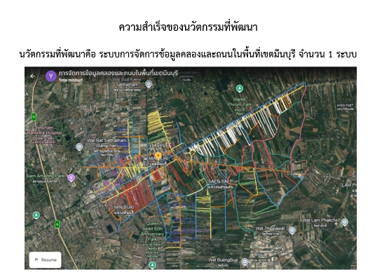 รายละเอียดโครงการ : การจัดการข้อมูลคลองและถนนในพื้นที่เขตมีนบุรี (ID: 8503)