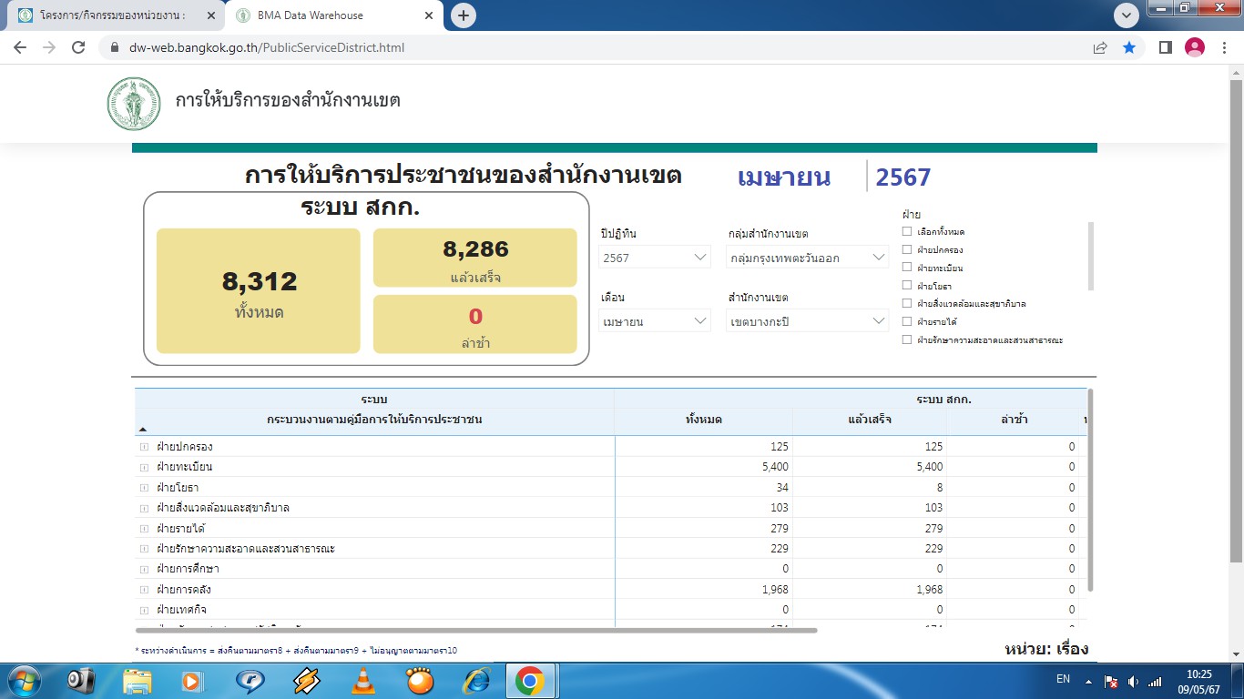 | 21 | ![]() | 2024-06-10 00:00:00.0000000 | 100.00 | 0.00 | เดือนพฤษภาคม 2567 จำนวนเรื่องทั้งหมด 10,079 จำนวนเรื่องที่ดำเนินการแล้วเสร็จ 10,048 | ||