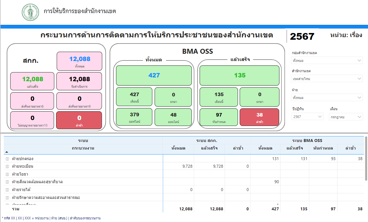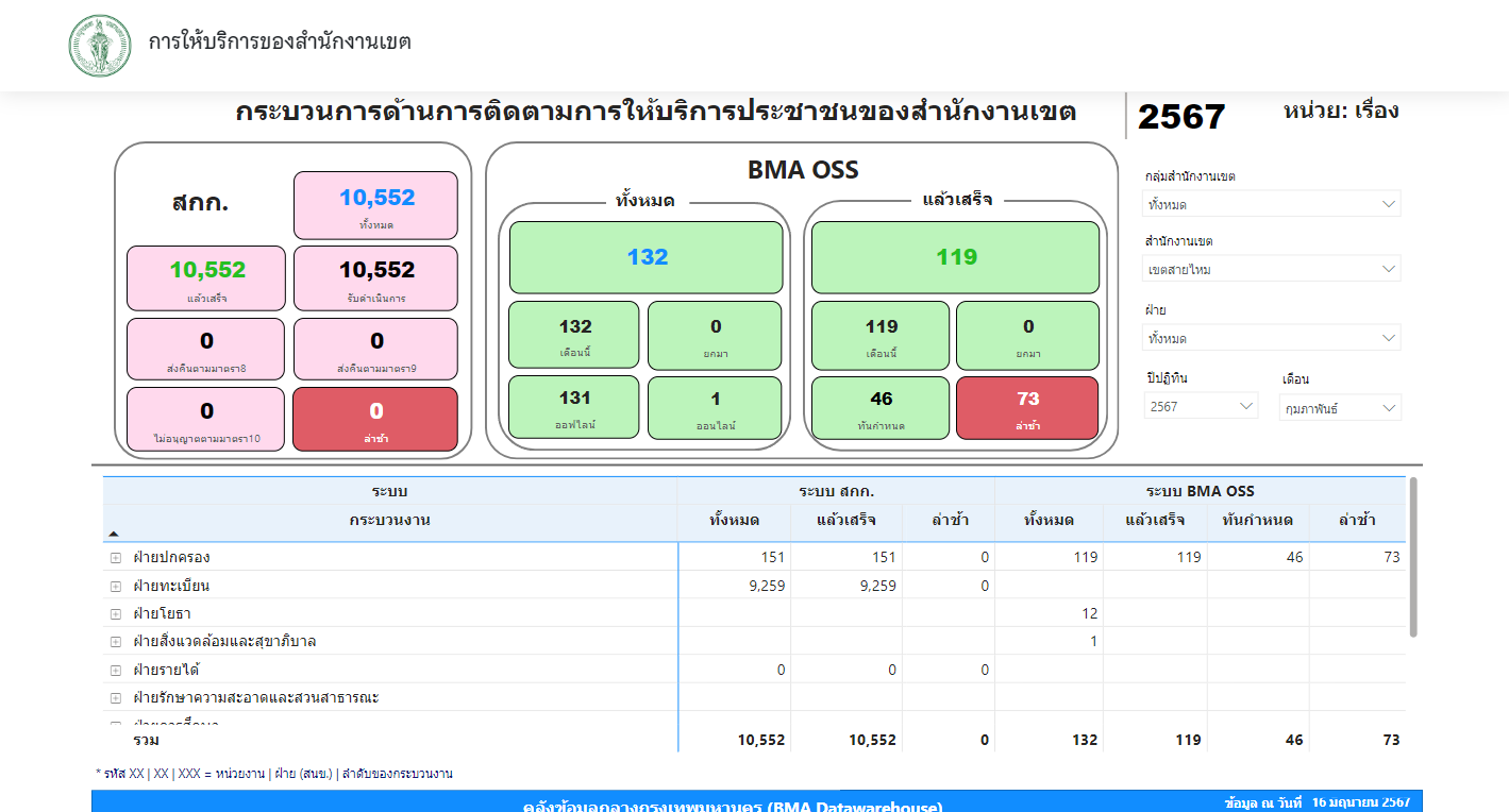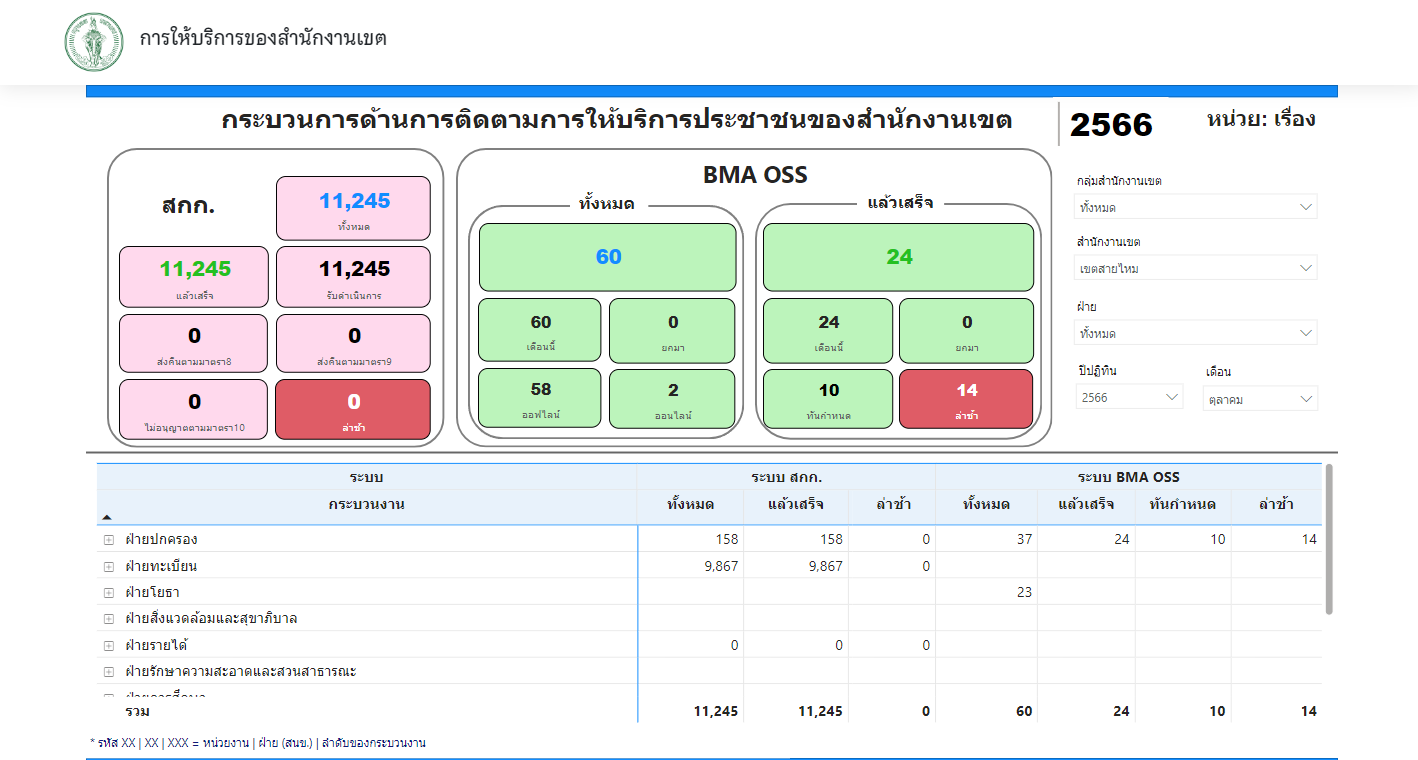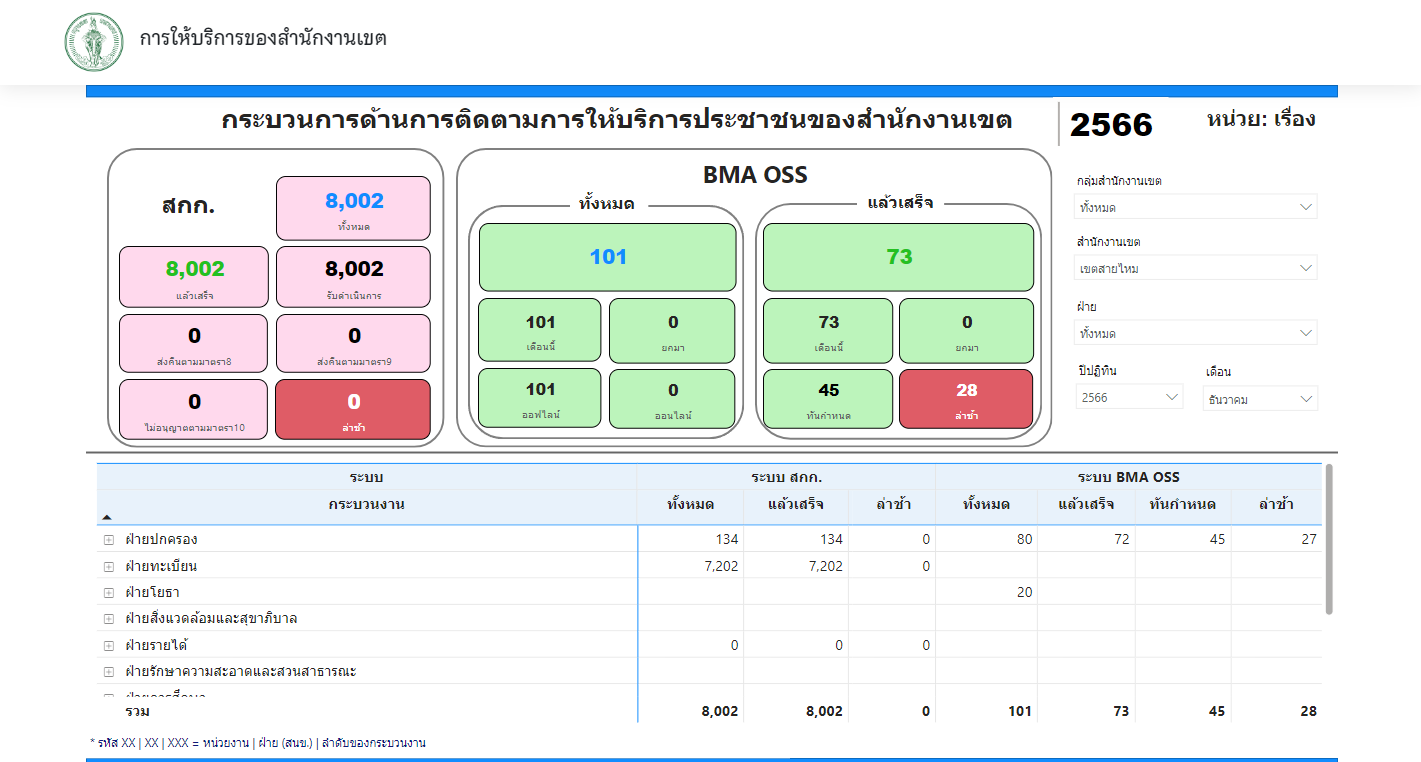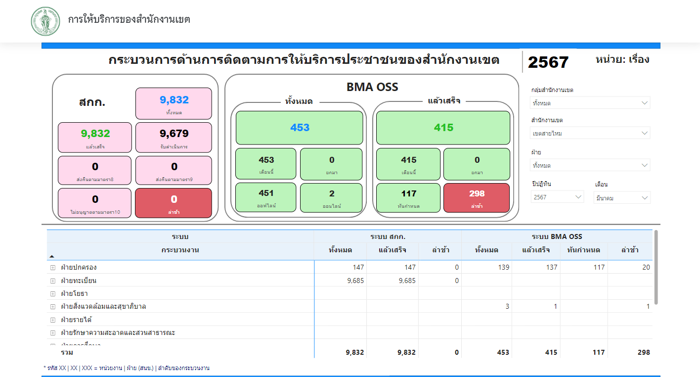 ![]() | - | พัฒนามาตรฐานการบริการประชาชน (% จำนวนคำขอที่เขตสามารถให้บริการได้ภายในกรอบเวลาตามคู่มือประชาชน) | 0.00 | 100.00 | สำนักงานเขตสายไหม | ฝ่ายปกครอง |
