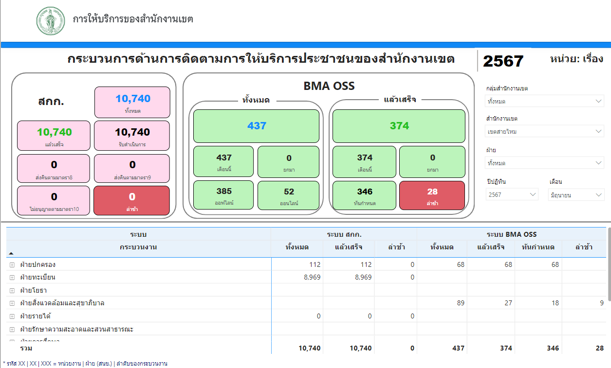 ![]() | 10 | รับคำขอ ให้บริการ รายงานผลดำเนินงาน เดือนกรกฎาคม 2567 | 8.00 | 2024-07-01 00:00:00.0000000 | 2024-07-31 00:00:00.0000000 |
