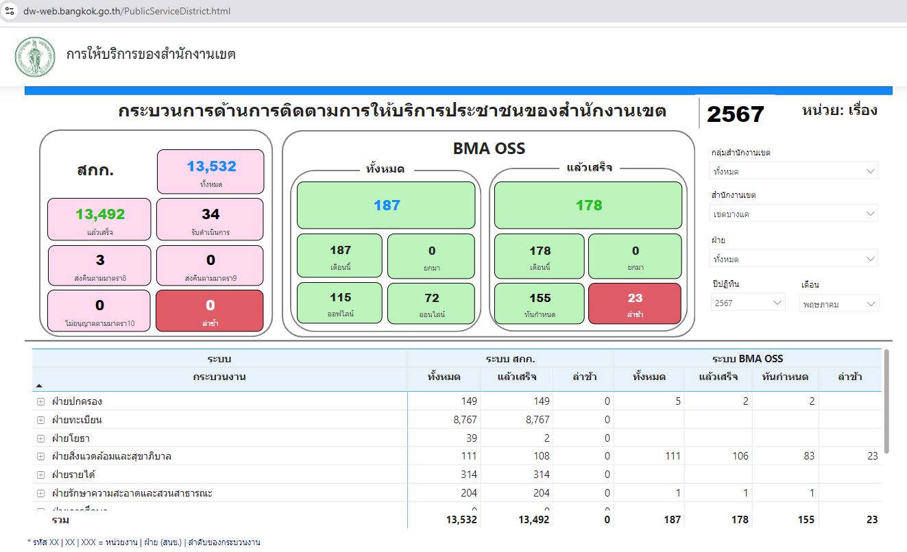 | 21 | ![]() | 2024-06-13 00:00:00.0000000 | 100.00 | 0.00 | สถิติข้อมูลการให้บริการประชาชน ณ สำนักงานเขตจากลิงก์ https://dw-web.bangkok.go.th/PublicServiceDistrict.html เดือน พ.ค. 67 13,532 ราย แล้วเสร็จ 13,492 ราย (รับดำเนินการ 34 ราย, ส่งคืนตามมาตรา 8 3 ราย) | ||