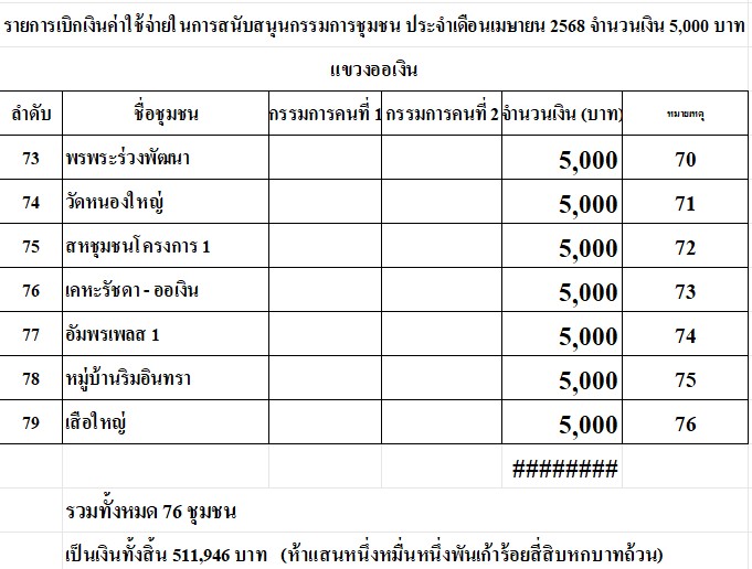 ![]() | - | ค่าใช้จ่ายในการสนับสนุนการดำเนินงานของคณะกรรมการชุมชน | 6,420,000.00 | 100.00 | สำนักงานเขตสายไหม | ฝ่ายพัฒนาชุมชนและสวัสดิการสังคม |