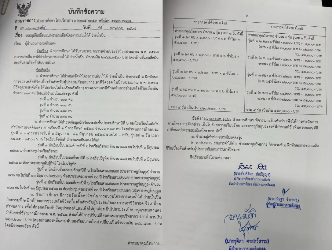 992024-12-23 00:00:00.000000010.000.00ค่าใช้จ่ายโครงการเล่นน้ำได้ ว่ายน้ำเป็น กำหนดดำเนินการในช่วงภาคเรียนที่ 1 ปีการศึกษา 2568