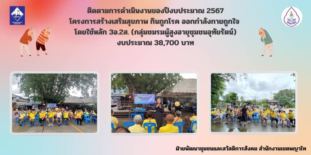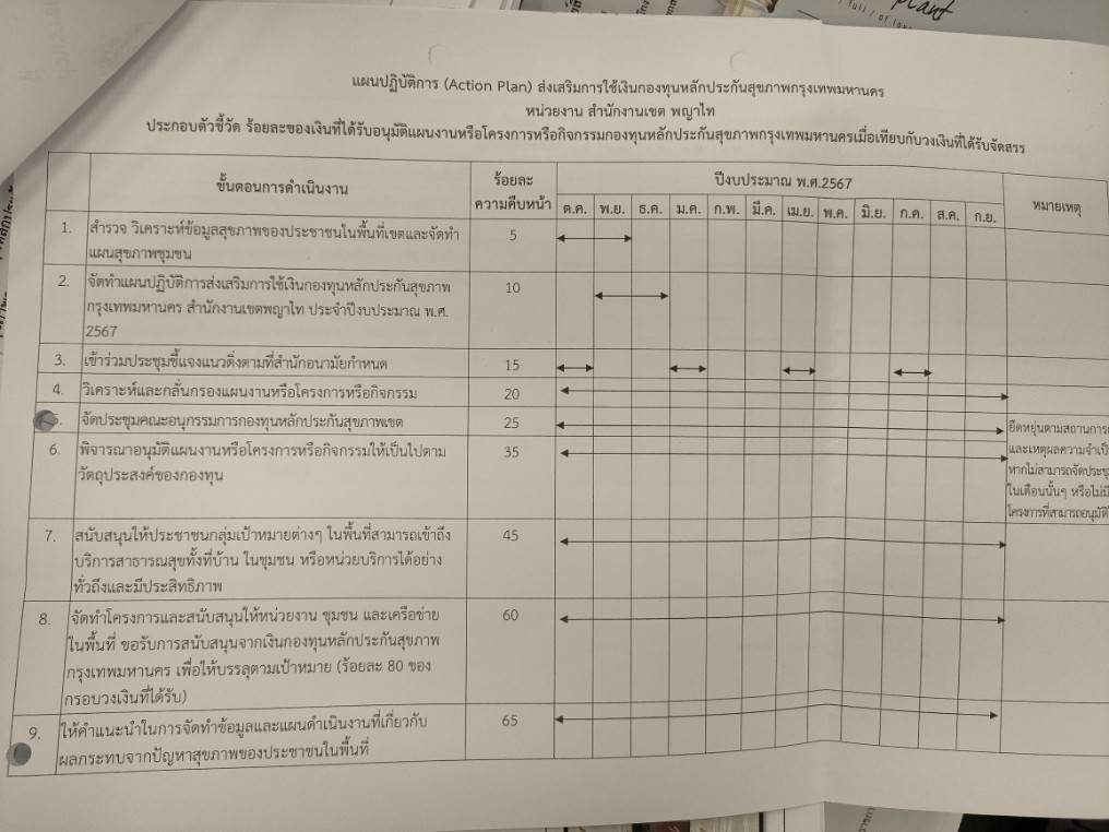 | 20 | ![]() | 2024-03-29 00:00:00.0000000 | 0.00 | 0.00 | จัดประชุมคณะอนุกรรมการกองทุนหลักประกันสุขภาพเขตพญาไทมีโครงที่ผ่านการพิจารณาเพิ่มเติมจำนวน 4 โครงการ ดังนี้ 1. โครงการรำเต้าเต๋อเพื่อสุขภาพของกลุ่มผู้สูงอายุชุมชนวัดมะกอกส่วนหน้างบประมาณ 20,425.-บาท 2. โครงการส่งเสริมสุขภาพห่างไกลยาเสพติดด้วยกีฬาฟุตซอล งบประมาณ 102,070.-บาท 3. โครงการคัดกรองความผิดปกติสายตาและแก้ไขปัญหาการมองเห็นไม่ชัดในกลุ่มผู้สูงอายุ งบประมาณ 429,050.-บาท 4. โครงการออกกำลังกายเสริมสร้างสุขภาพห่างไกลโรค งบประมาณ 32,000.-บาท รวมเป็นเงินทั้งสิ้น 583,545.-บาท | ||